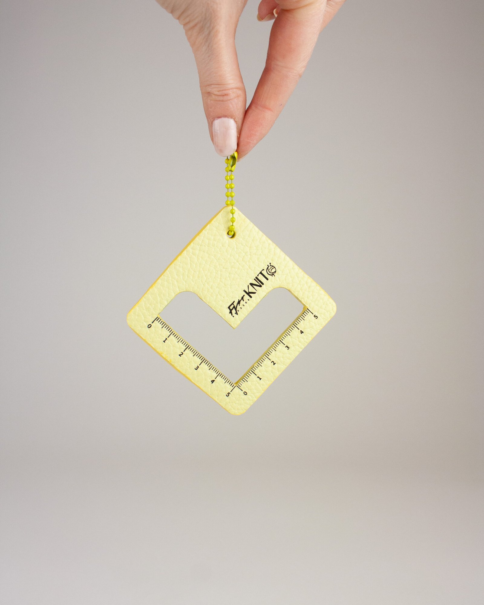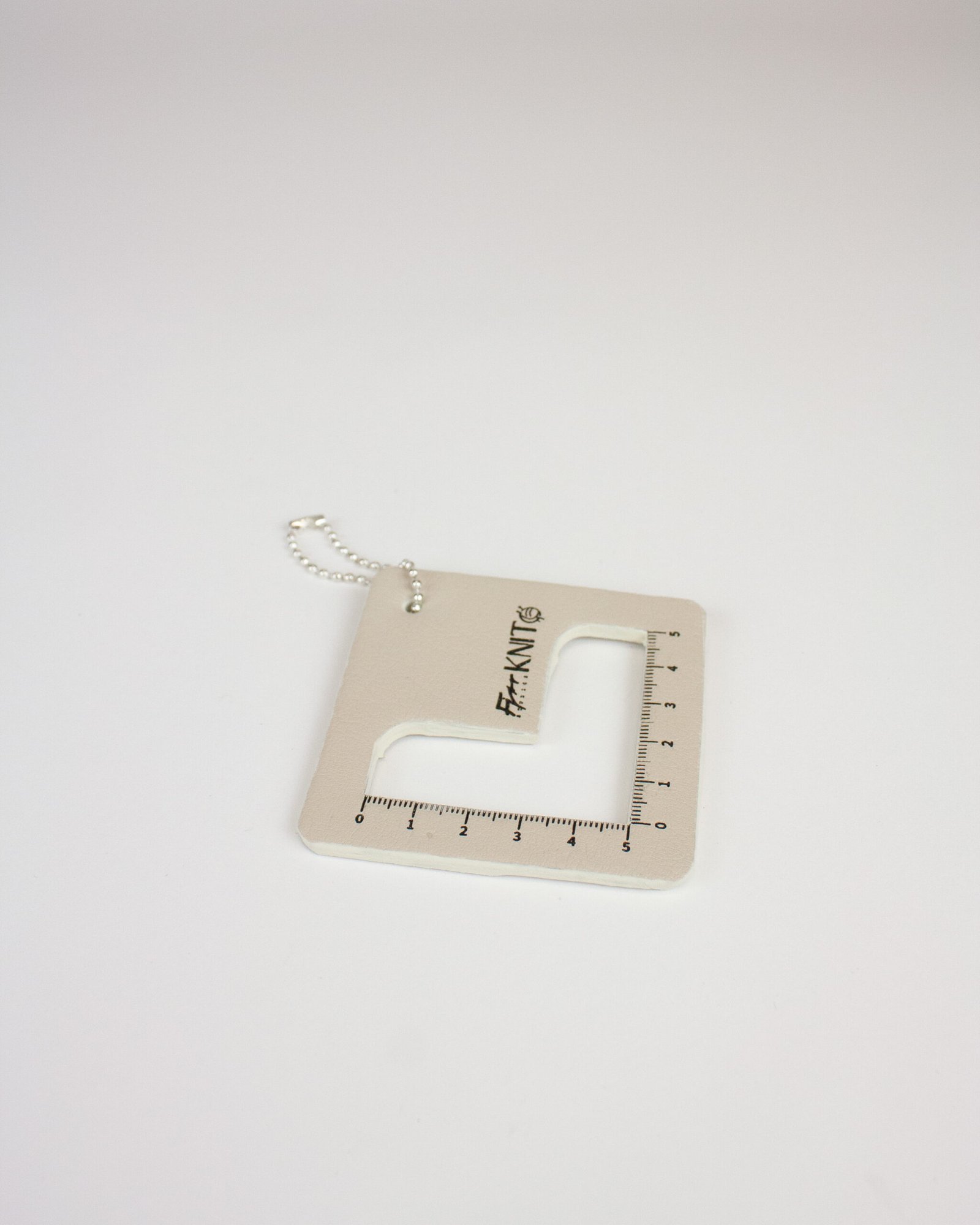Et lite måleverktøy som måler strikkefasthet i et strikkearbeid. Viktig verktøy når man følger en gitt strikkefasthet i strikkeoppskrifter.