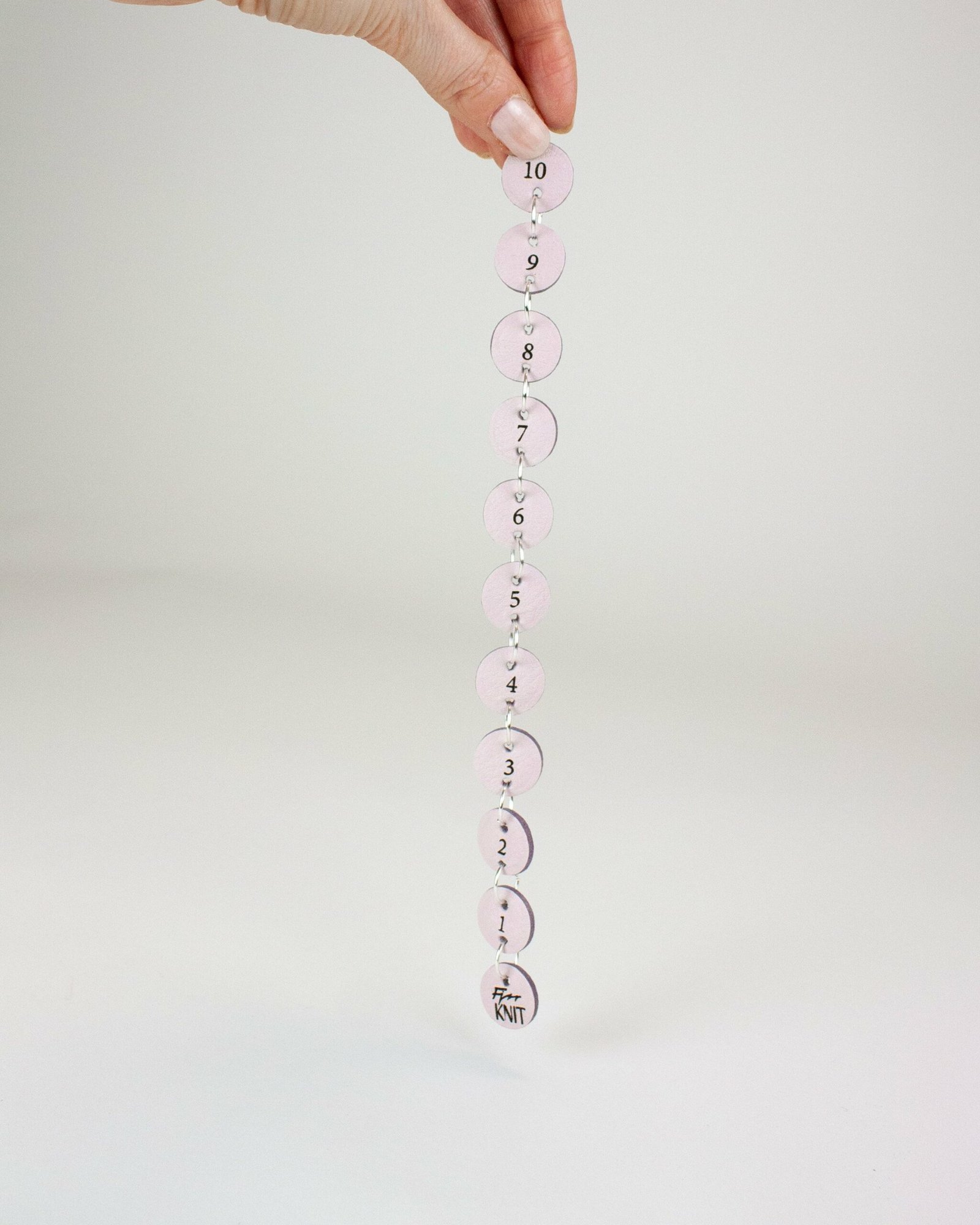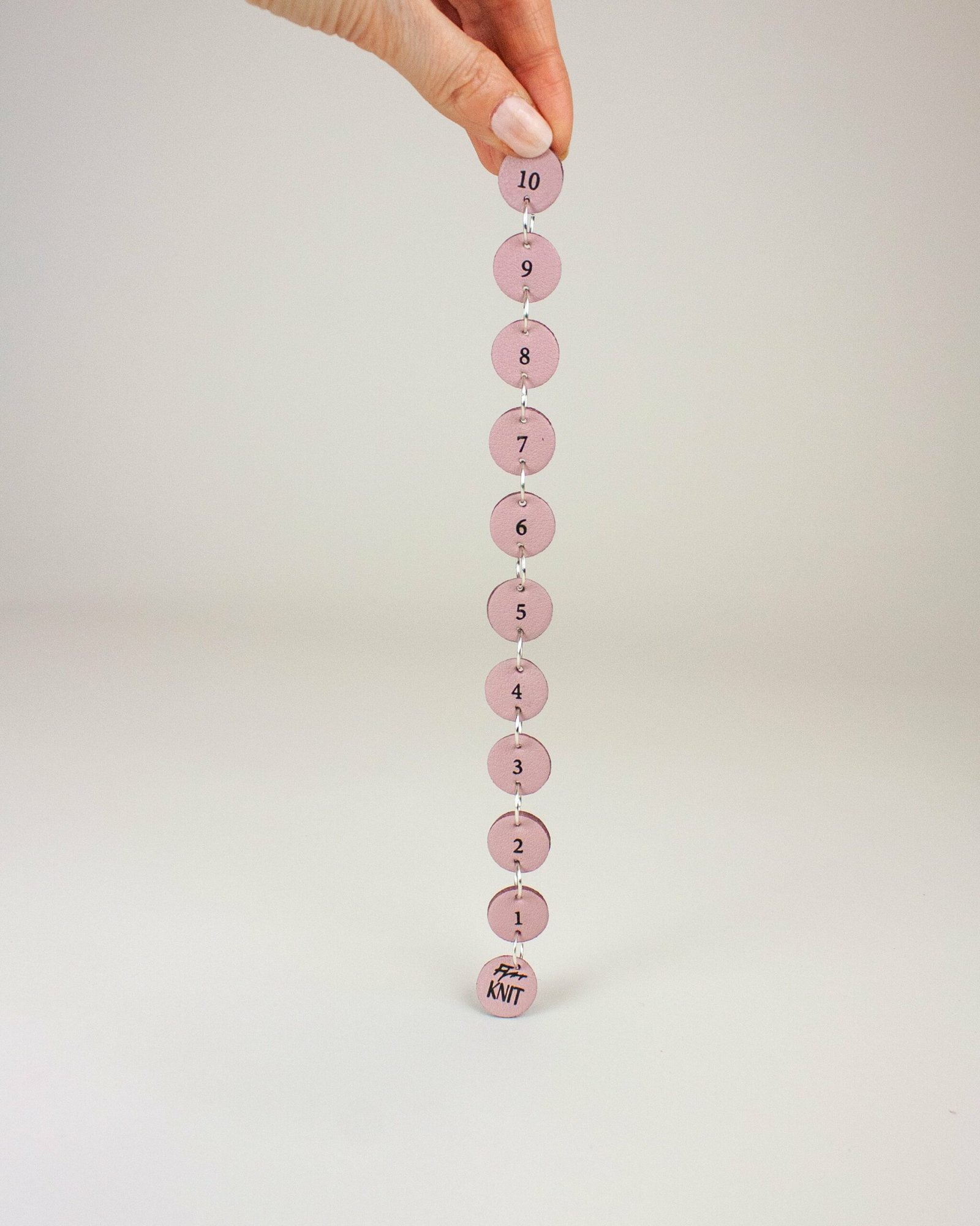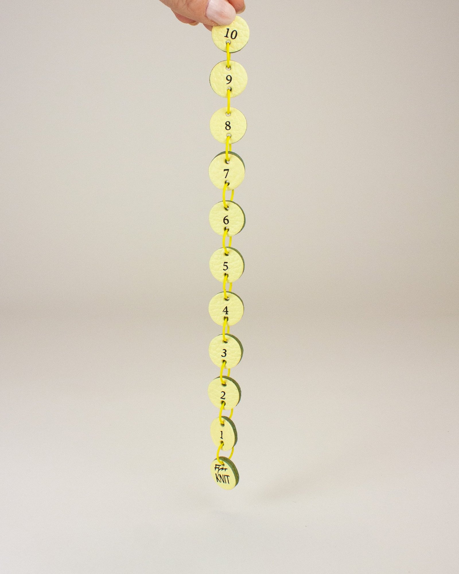 Strikkefisk som redskap til å telle omganger i et strikke-prosjekt.