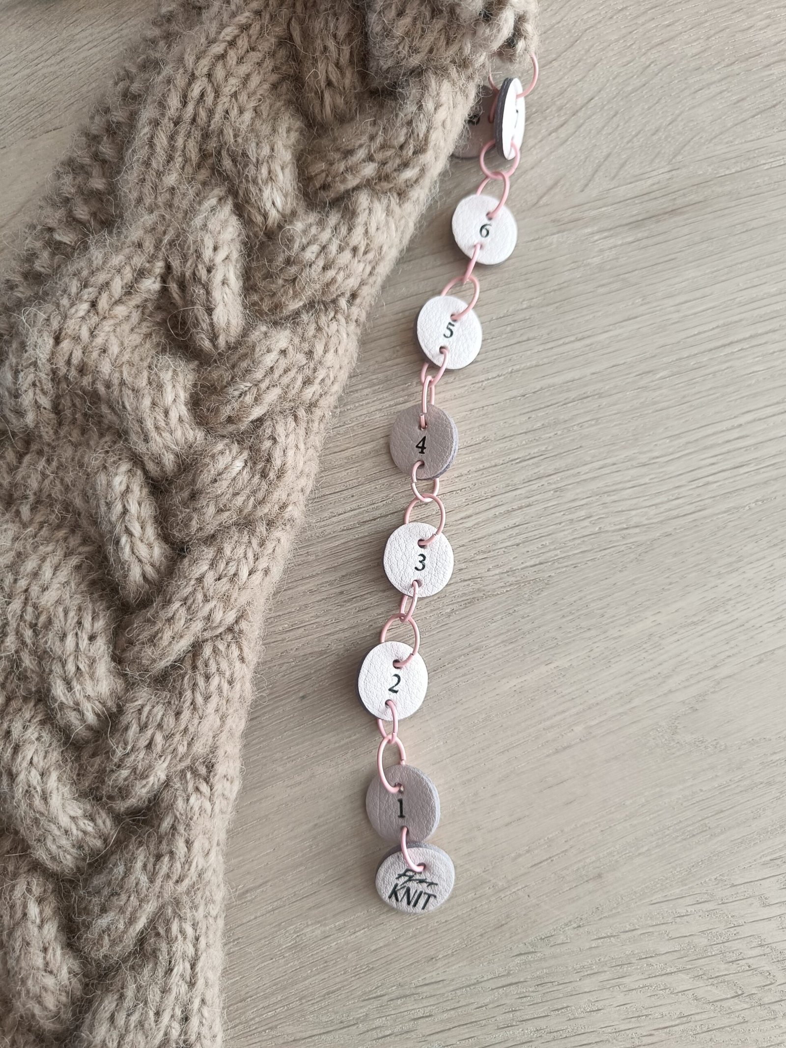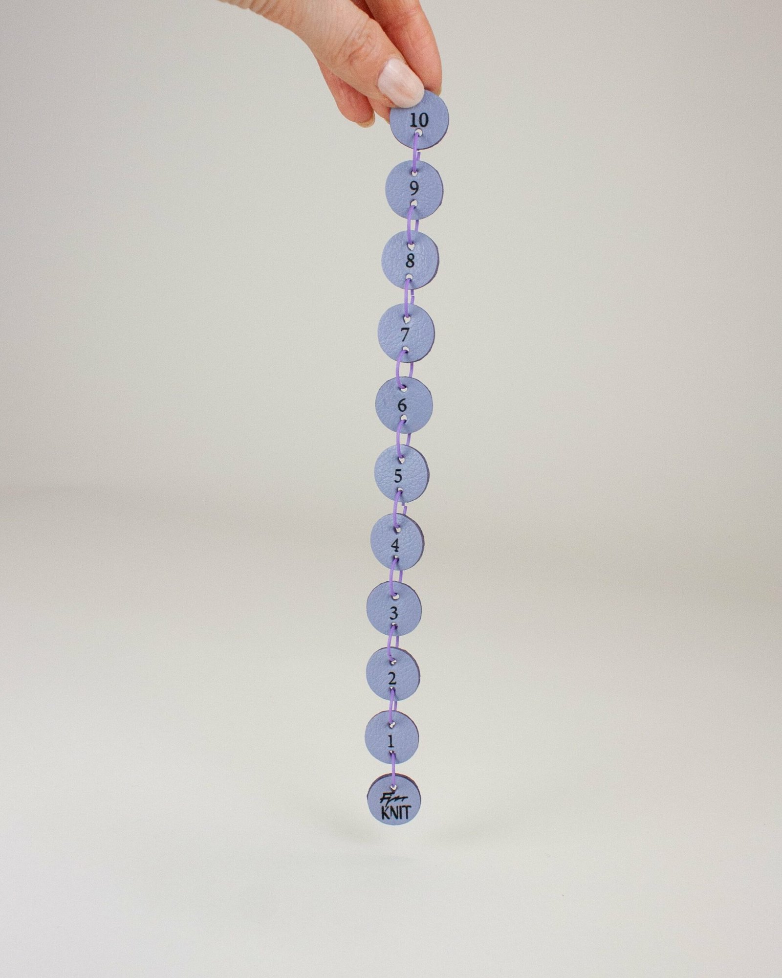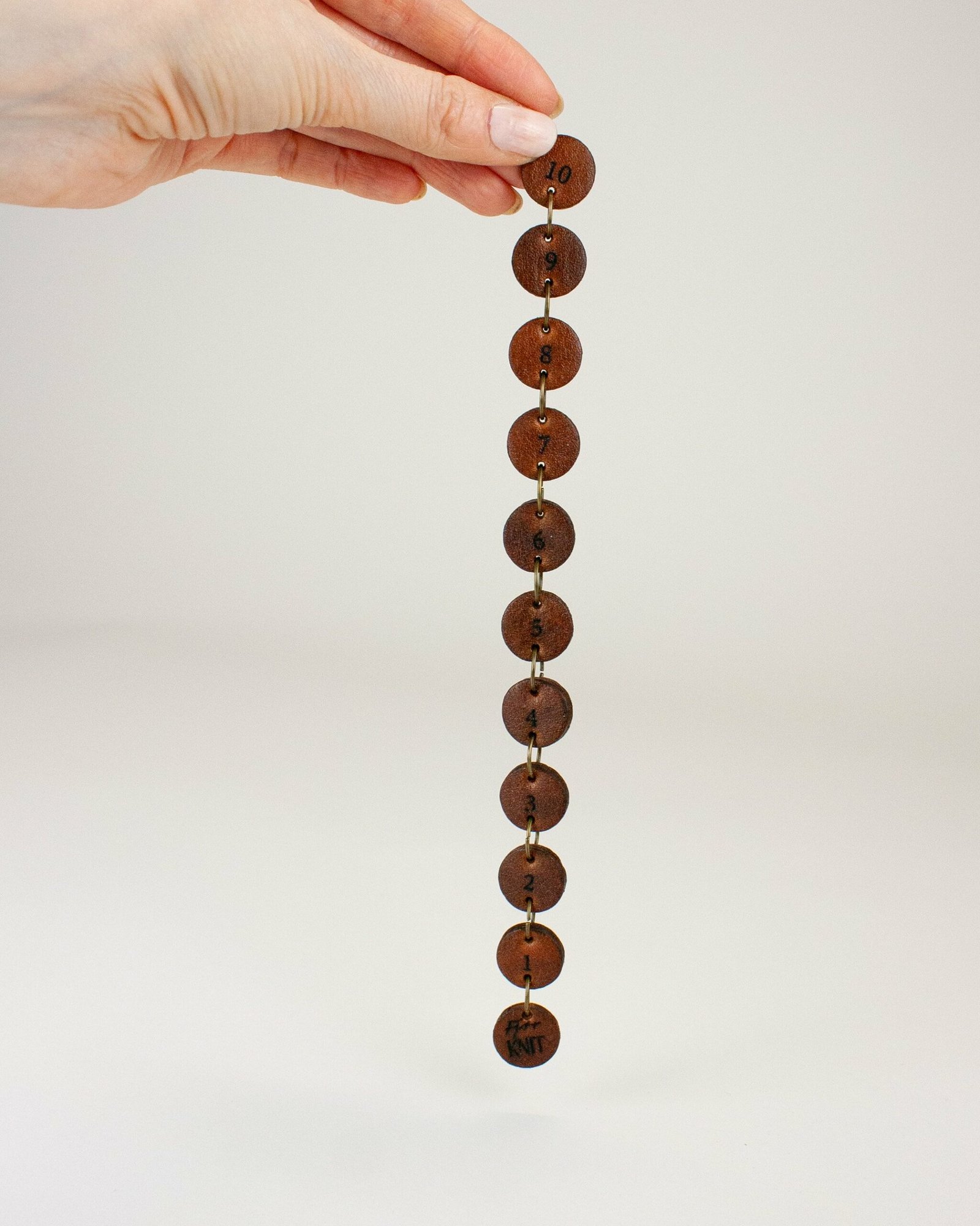 Strikkefisk som redskap til å telle omganger i et strikke-prosjekt.