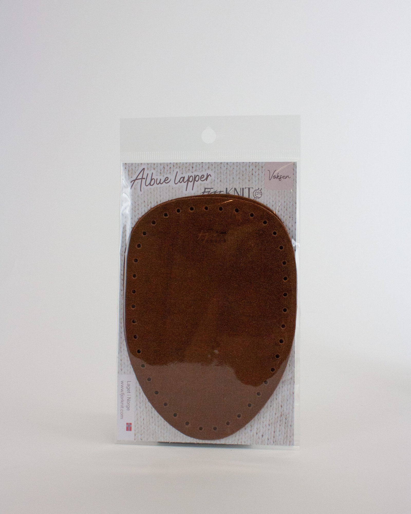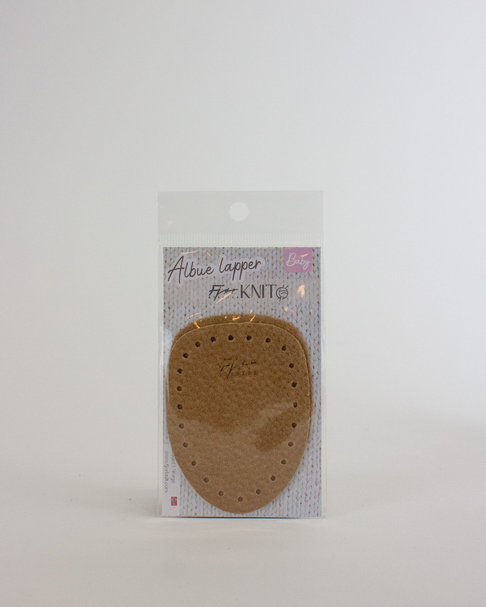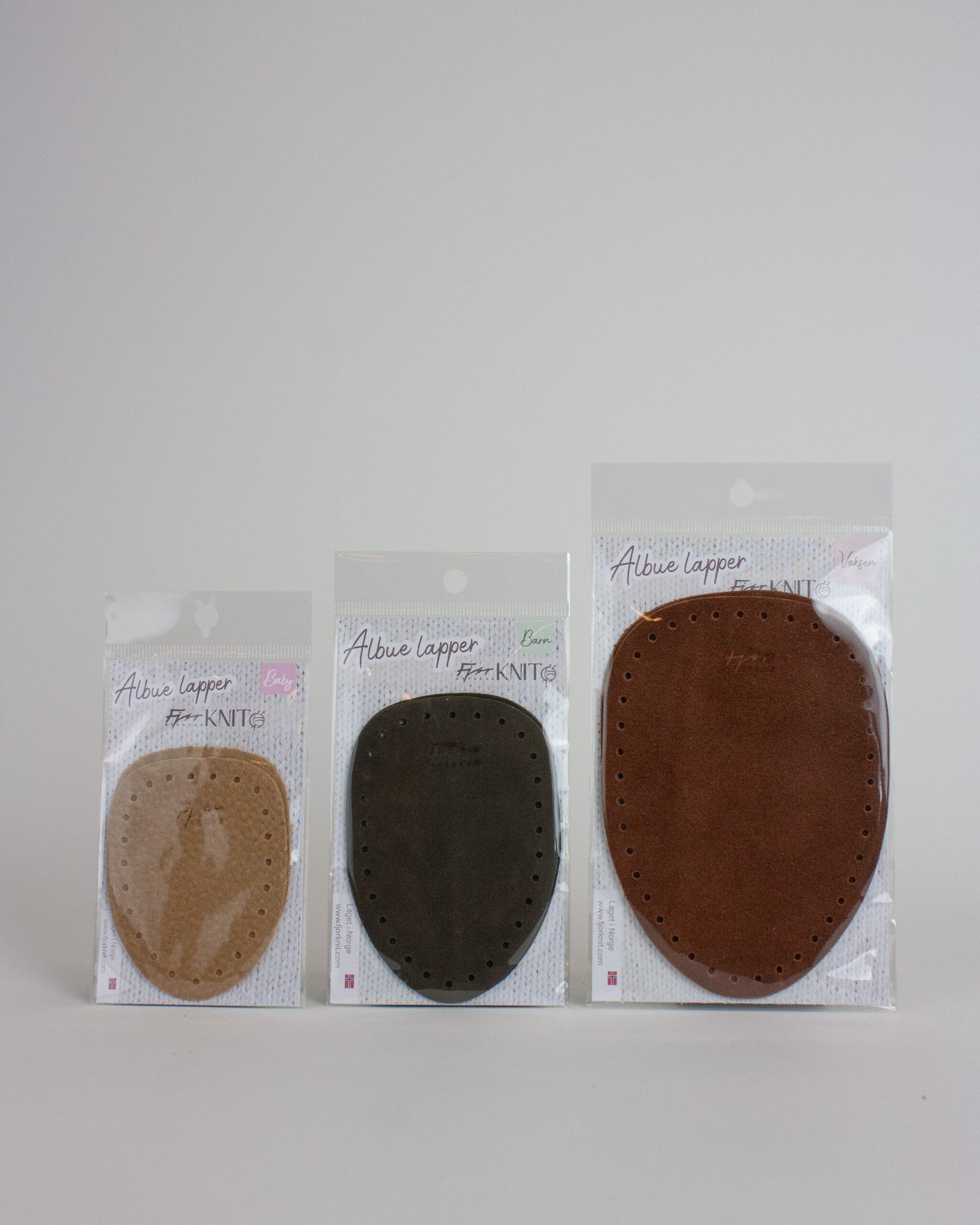 Albuelapper i semsket skinn til håndstrikkede overdeler
