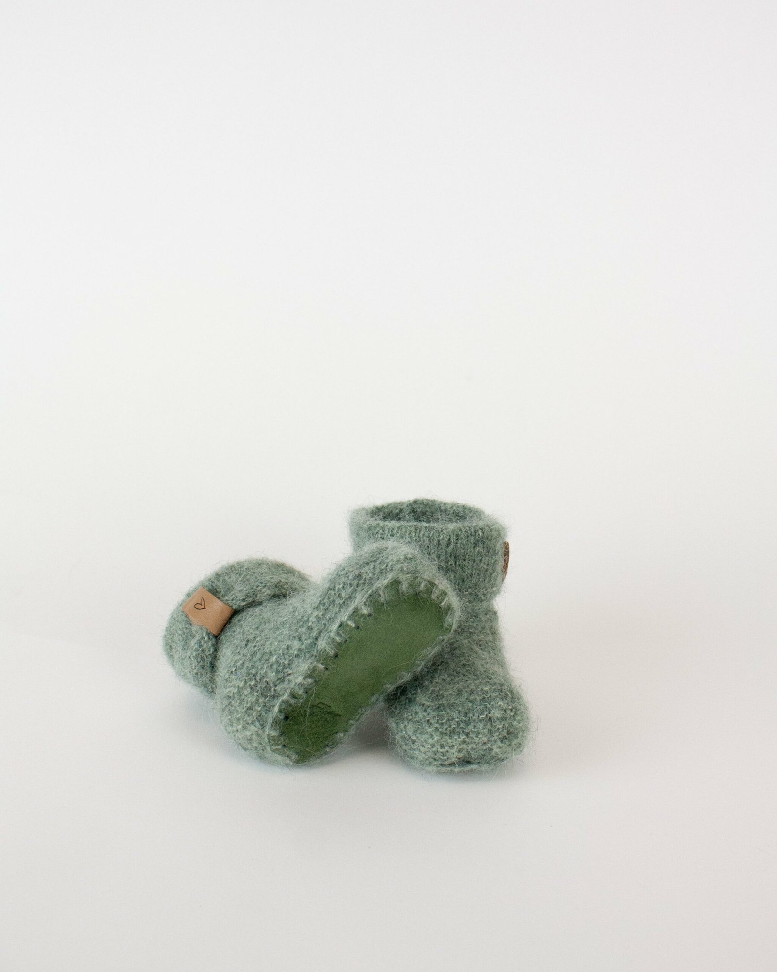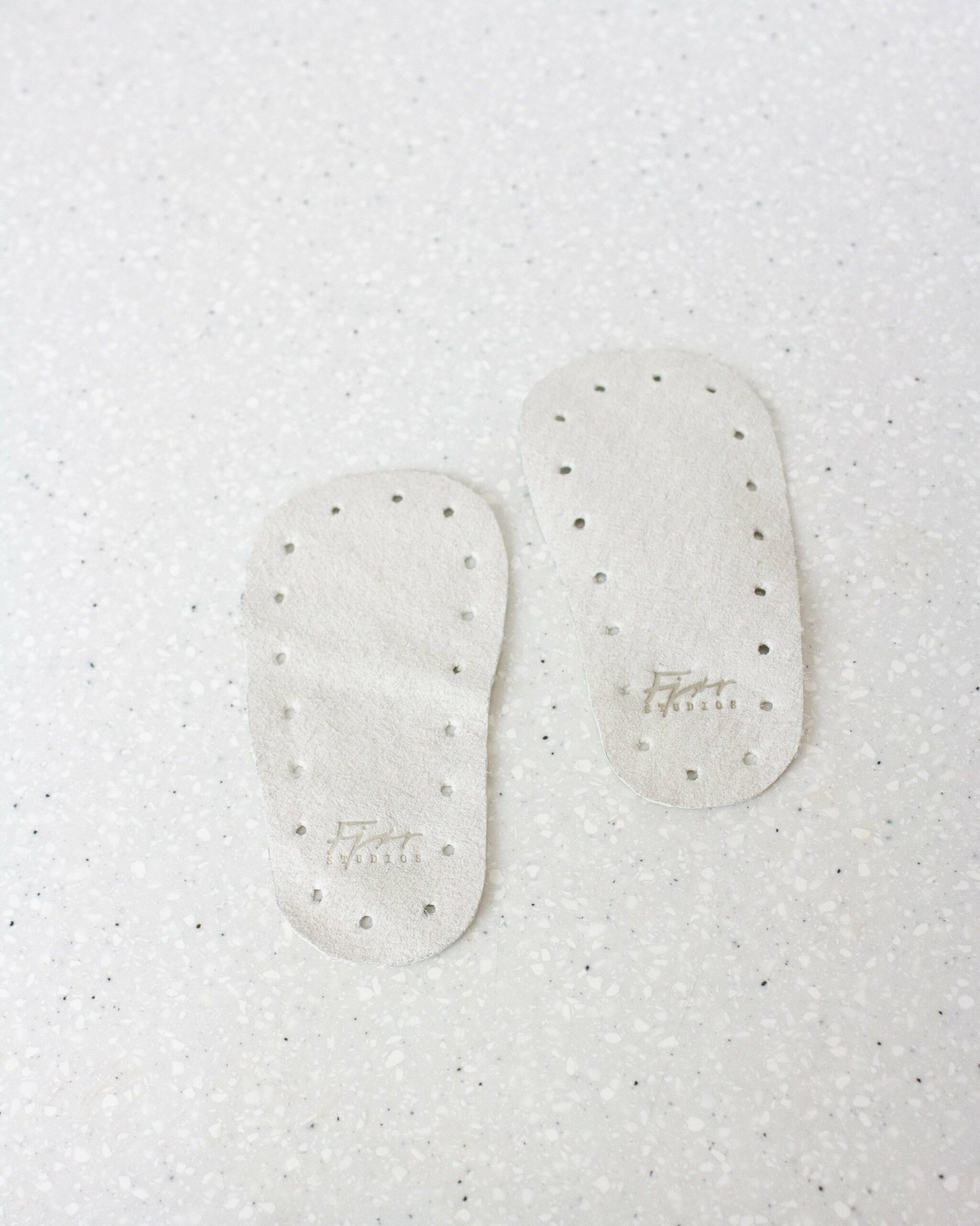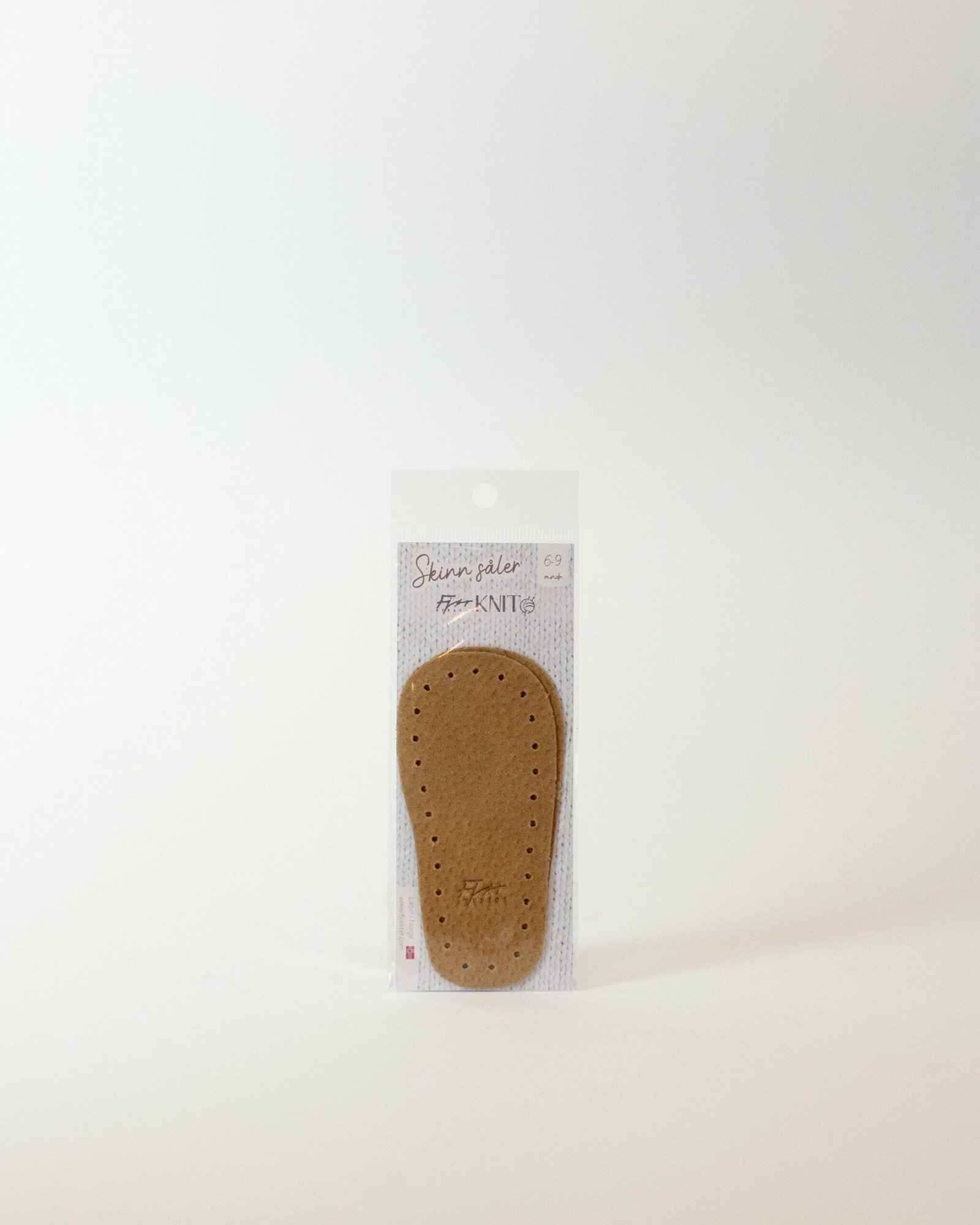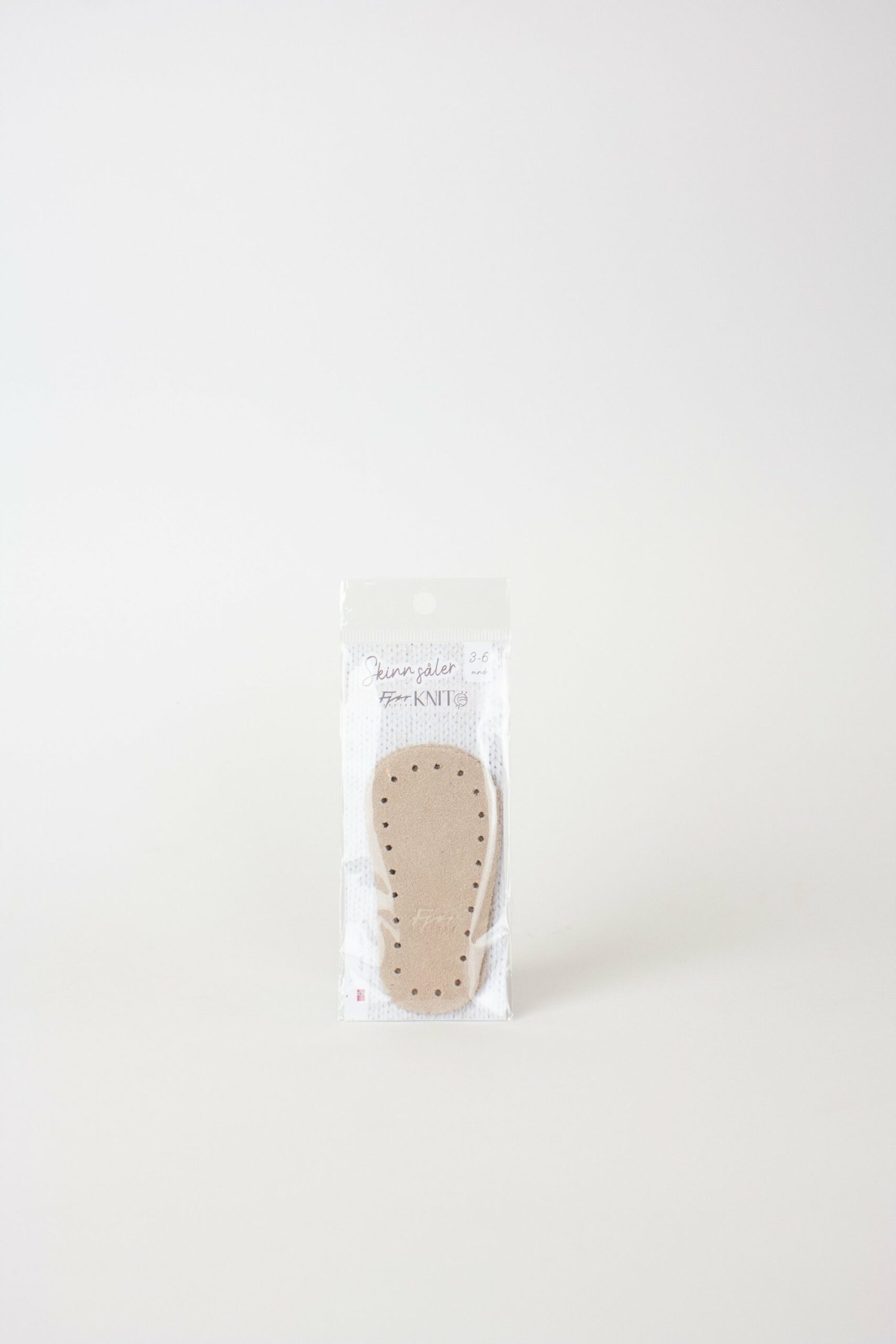 Skinnsåler til baby for håndstrikkede tøfler og sokker.