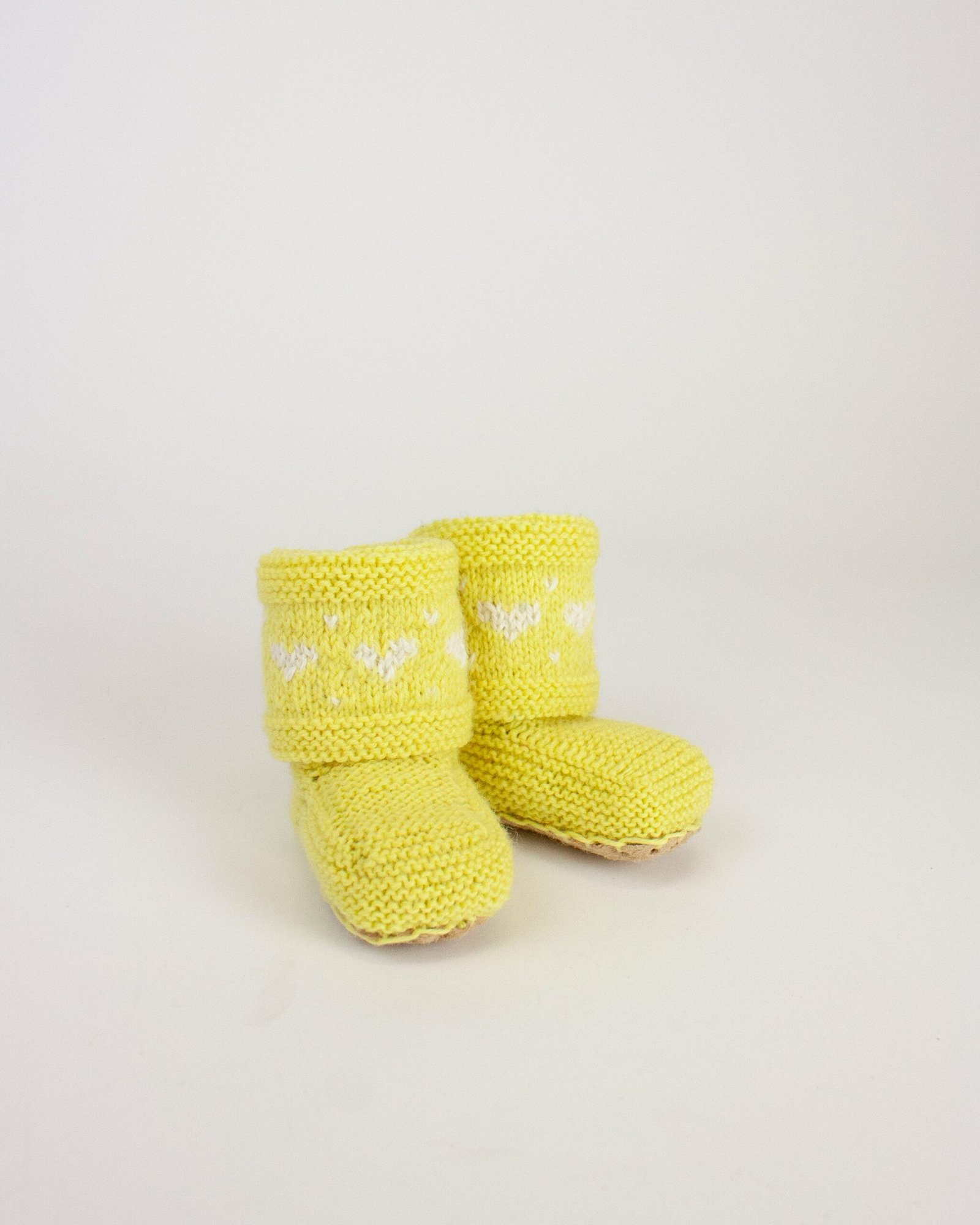 - Passer til strikkeoppskriften «Hjertevarme Babytøfler»