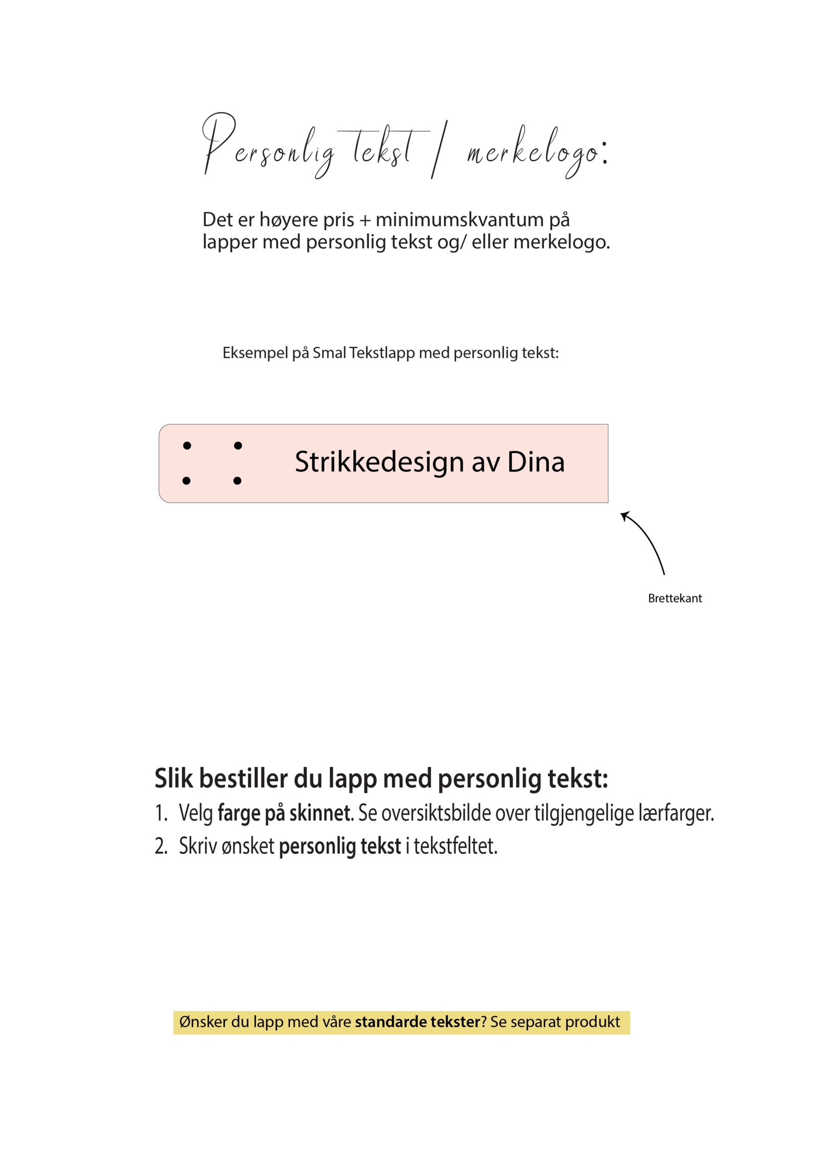Slik bestiller du lapp med personlig tekst eller merkelogo: