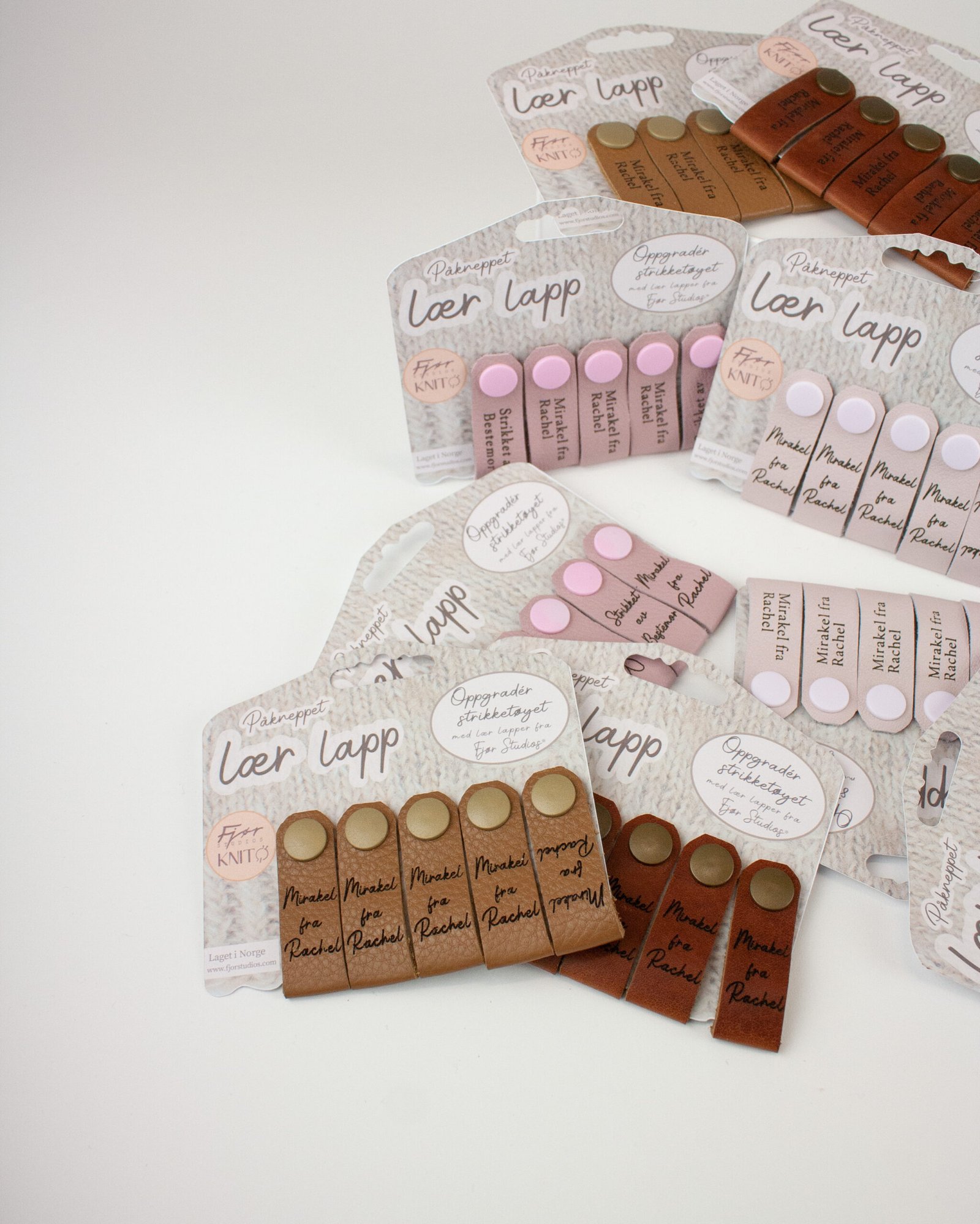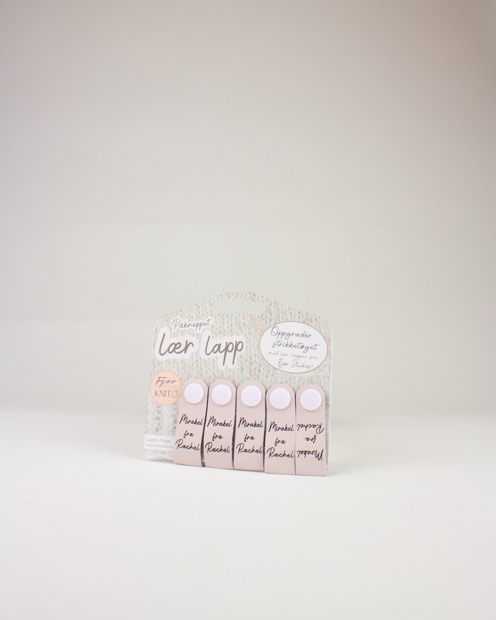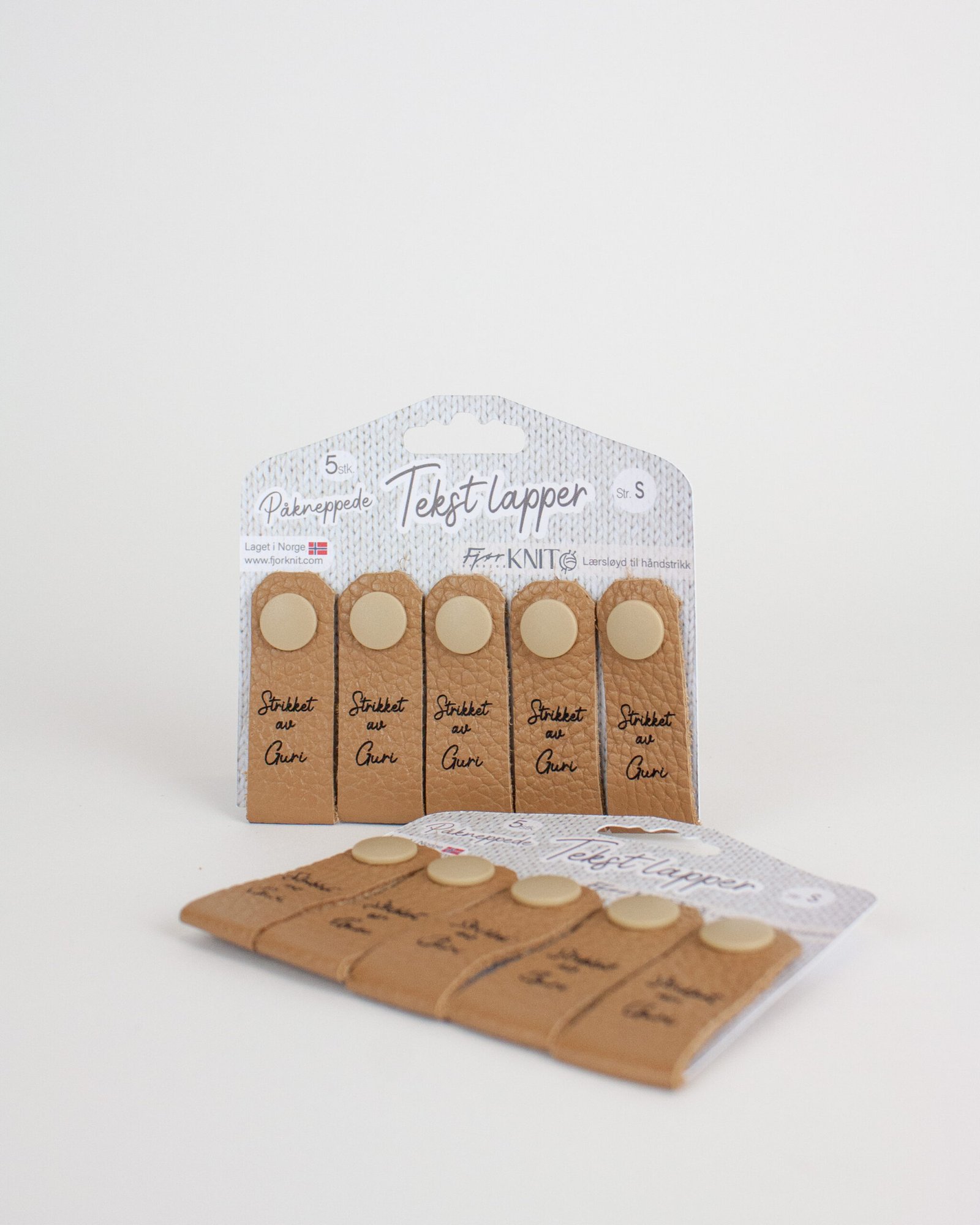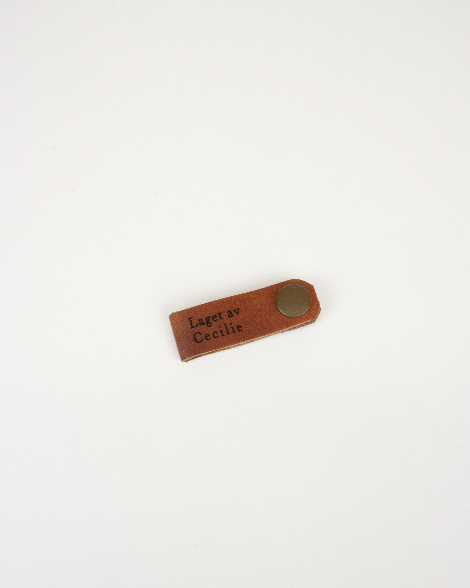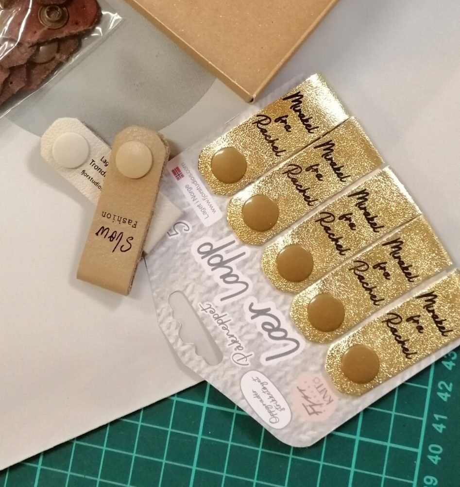 En bestselger! Få din egen personlige lær lapp produsert i favorittfargen med ditt eget navn eller merkelogo på! Lappene kneppes enkelt på mellom masker, og gir håndstrikkede plagg et elegant og personlig uttrykk. En elegant måte å tilføre en personlig vri på et håndlaget produkt.