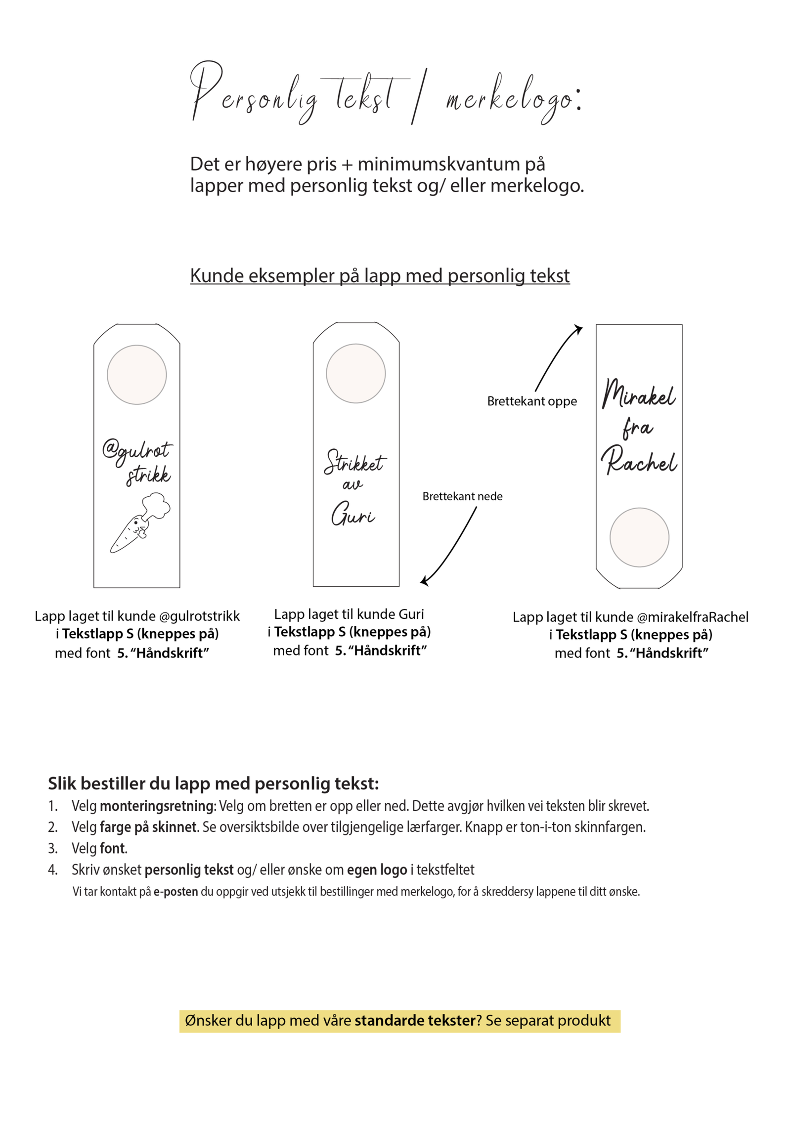 Slik bestiller du lapp med personlig tekst eller merkelogo: