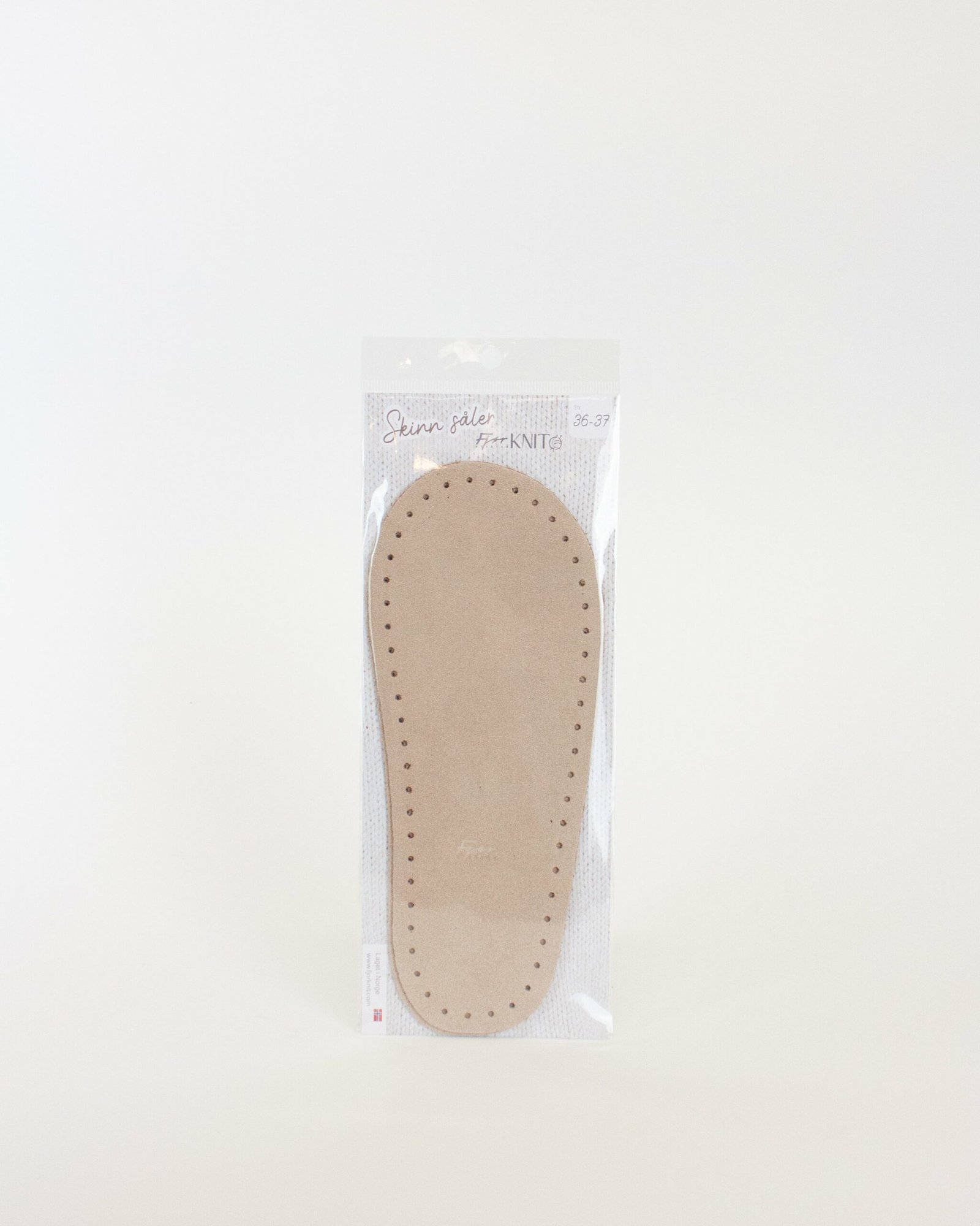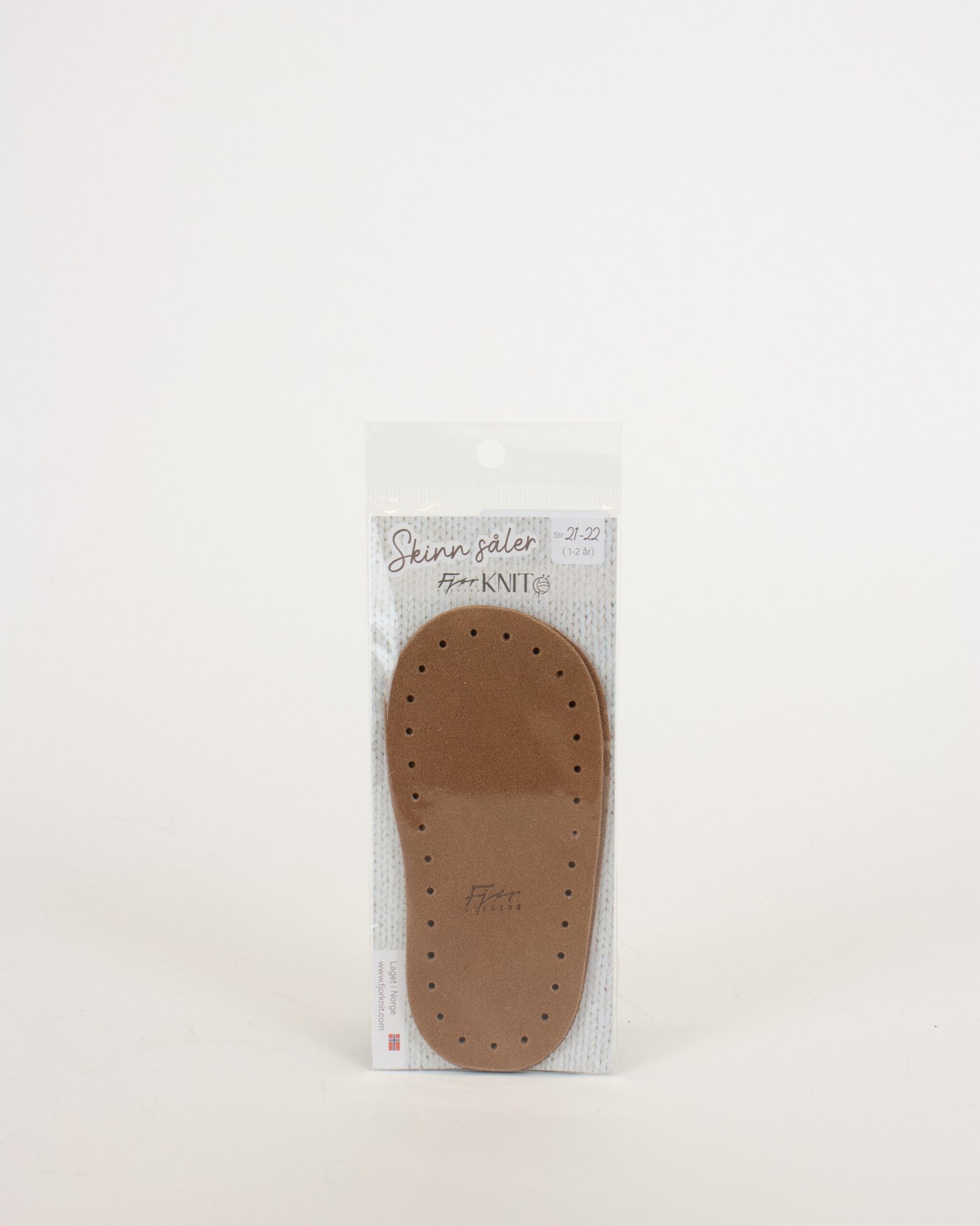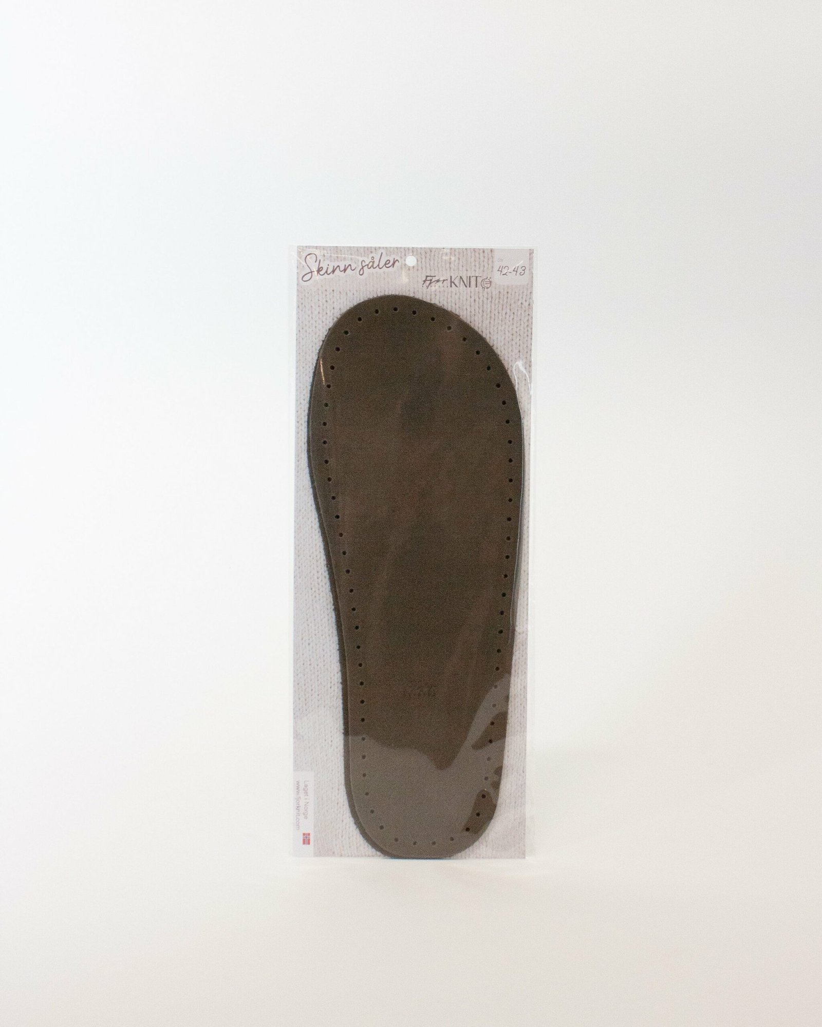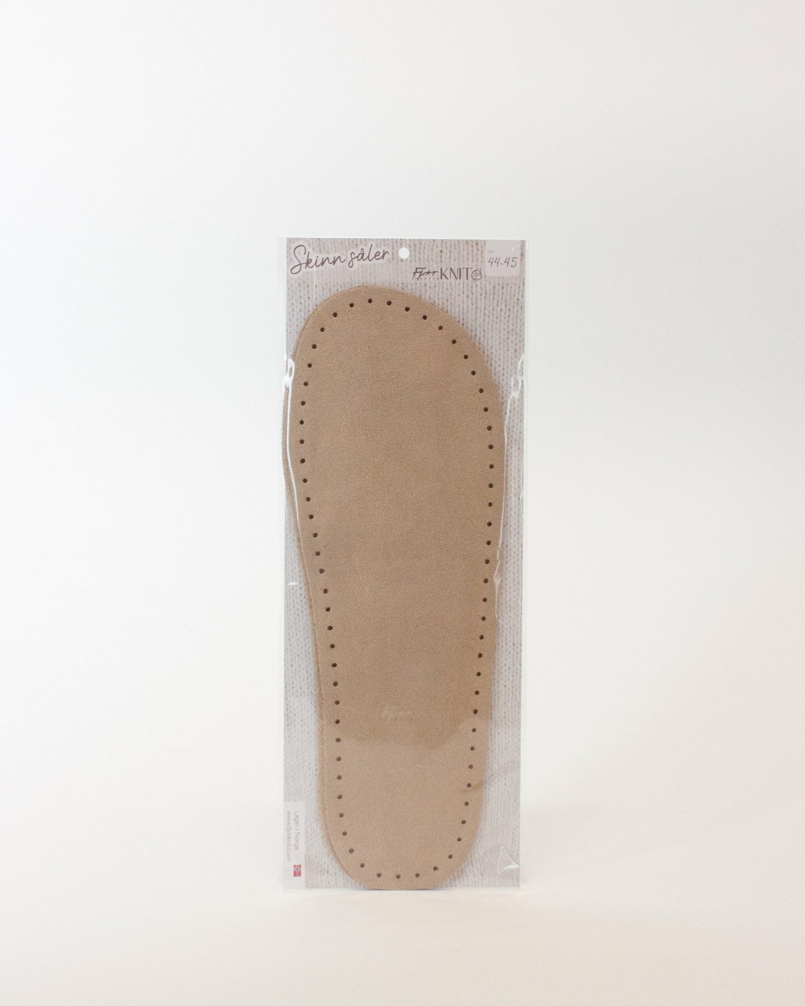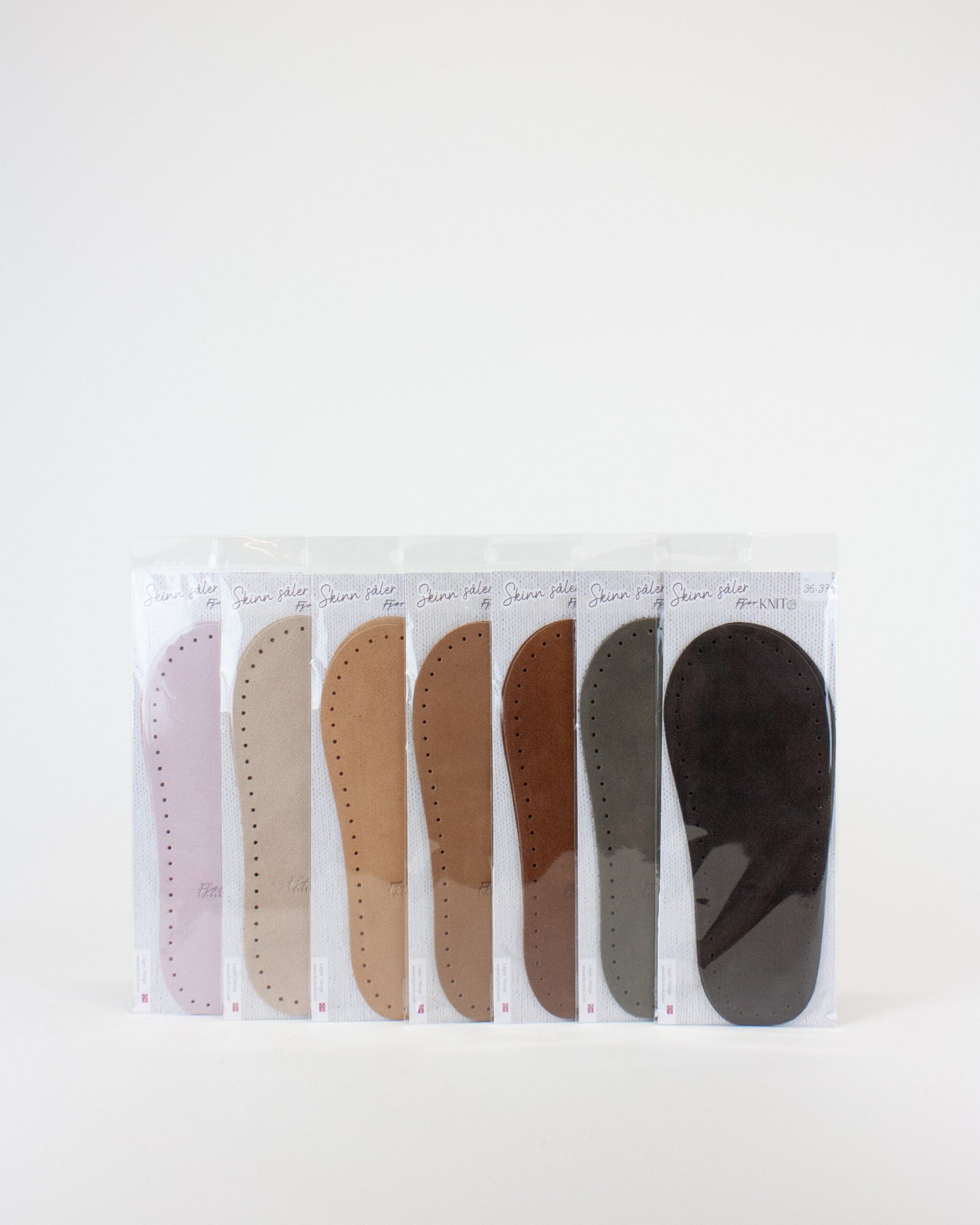 Elegante semskete skinnsåler i fra størrelse 19 til 45, utviklet av oss her i Fjør Knit.
