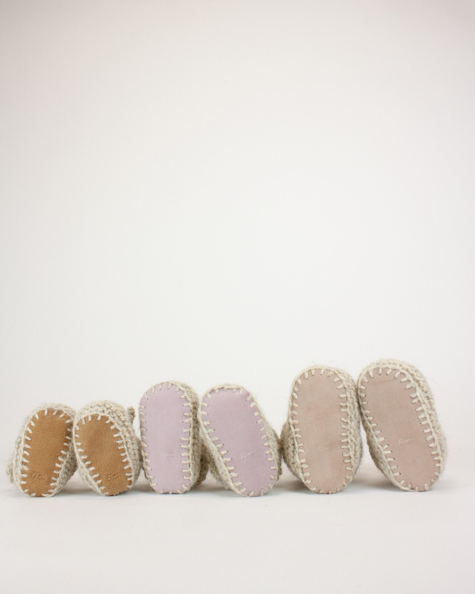Håndstrikket fottøy som tøfler og sokker er svært luksuriøse produkter strikket med mye omtanke. De fortjener et elegant tilbehør som beskytter mot slitasje fottøy får ved innendørsbruk. Sålene sys på undersiden av fottøyet med nål og garntråd.