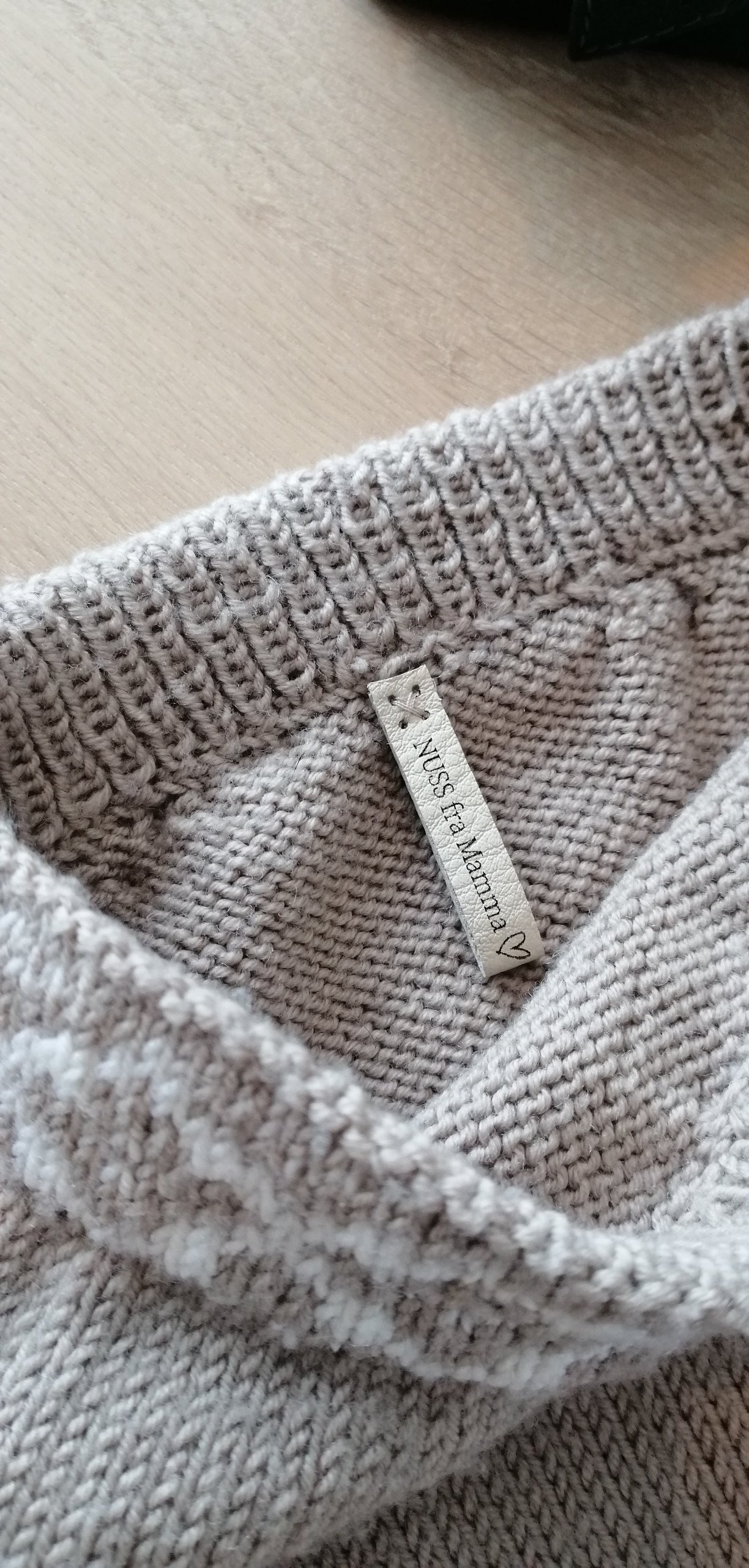 Ta av lappene før du vasker strikketøyet for å bevare egenskapene i materialet til læret, som lappen er laget av. Dersom lappene må vaskes og det ikke er ønskelig å fjerne lappene; bruk skånsom håndvask eller flekkvask