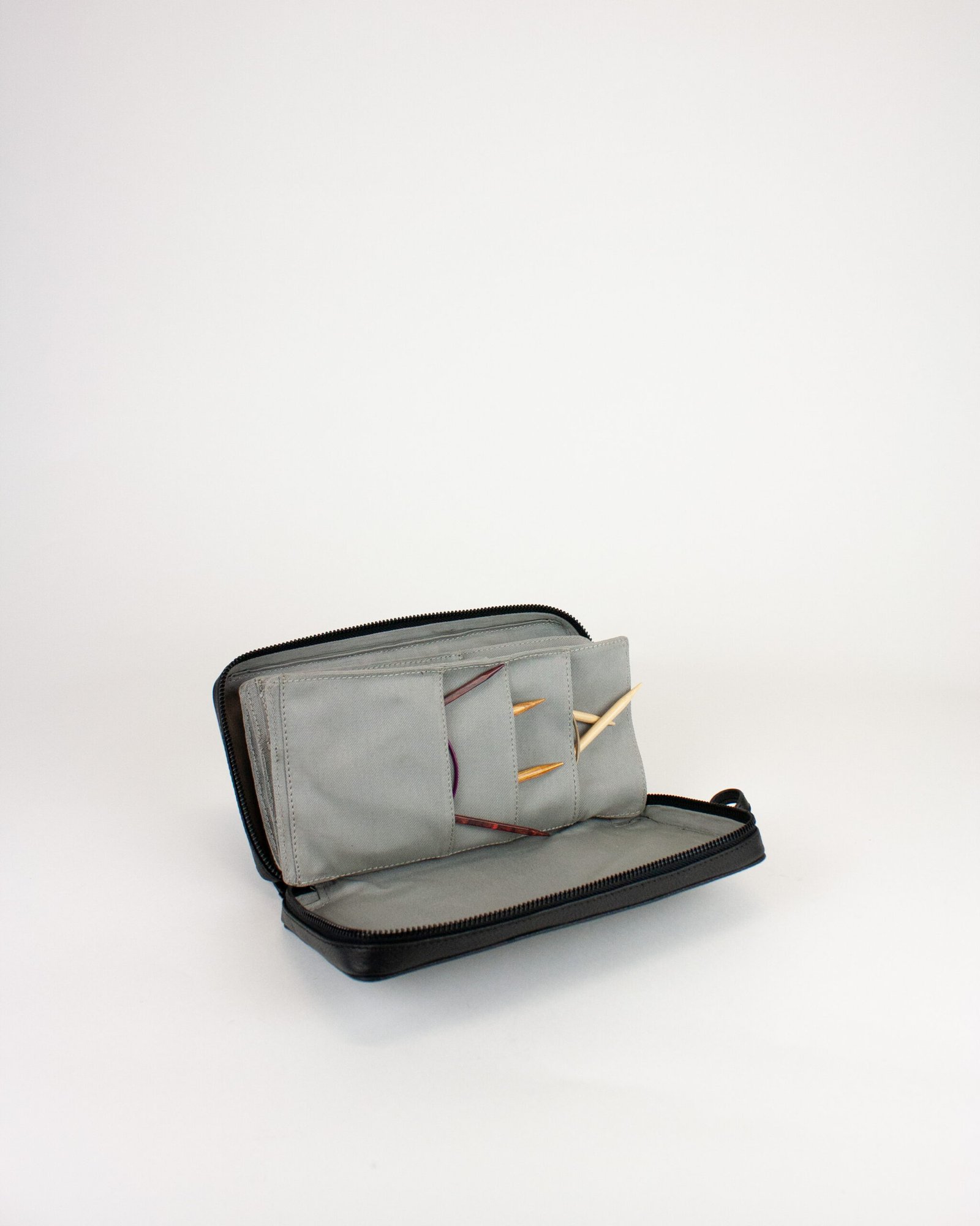 Skinnmappe til oppbevaring av strømpepinner og heklenåler til strikkehobbyen