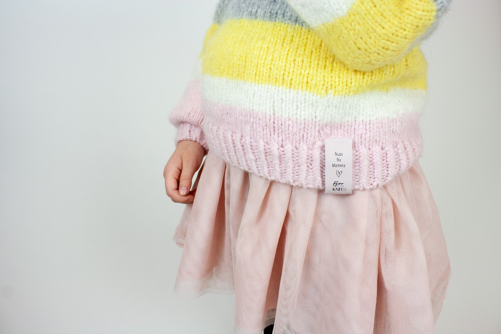 Vaskeanvisning: Skinn skal ikke bløtlegges i vann. Ta av skinnlappene før du vasker strikketøy.
