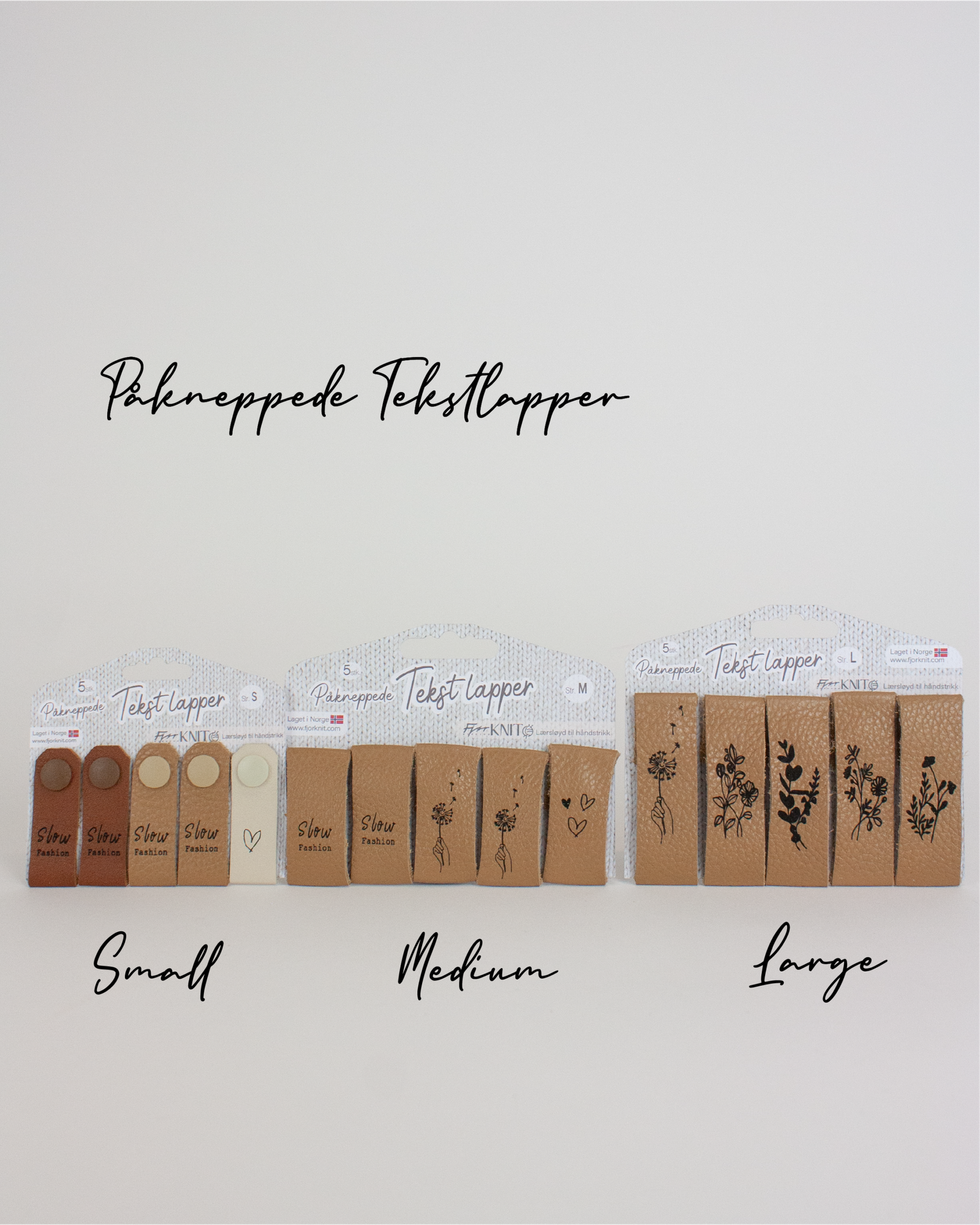 1 eller 5 stk tekstlapper i størrelse Medium med standard tekst