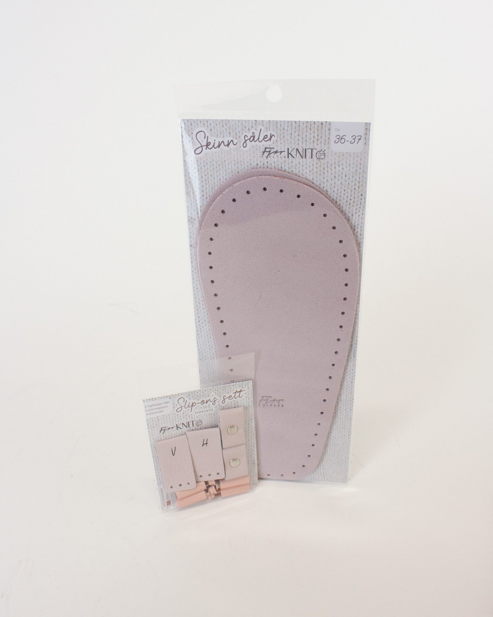 Et sett med lærtilbehør til vår garnpakke BÆKRE Slip-on’s.