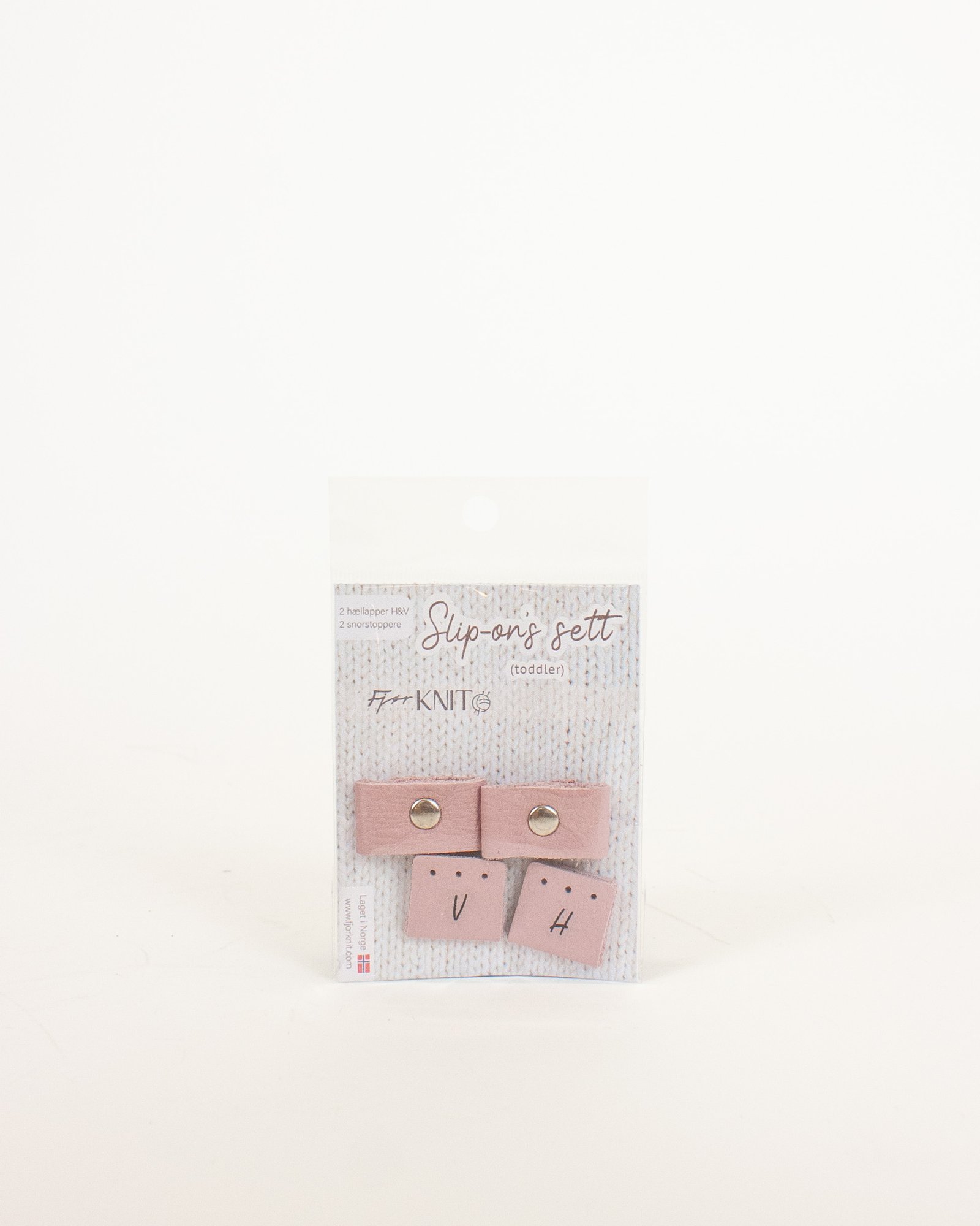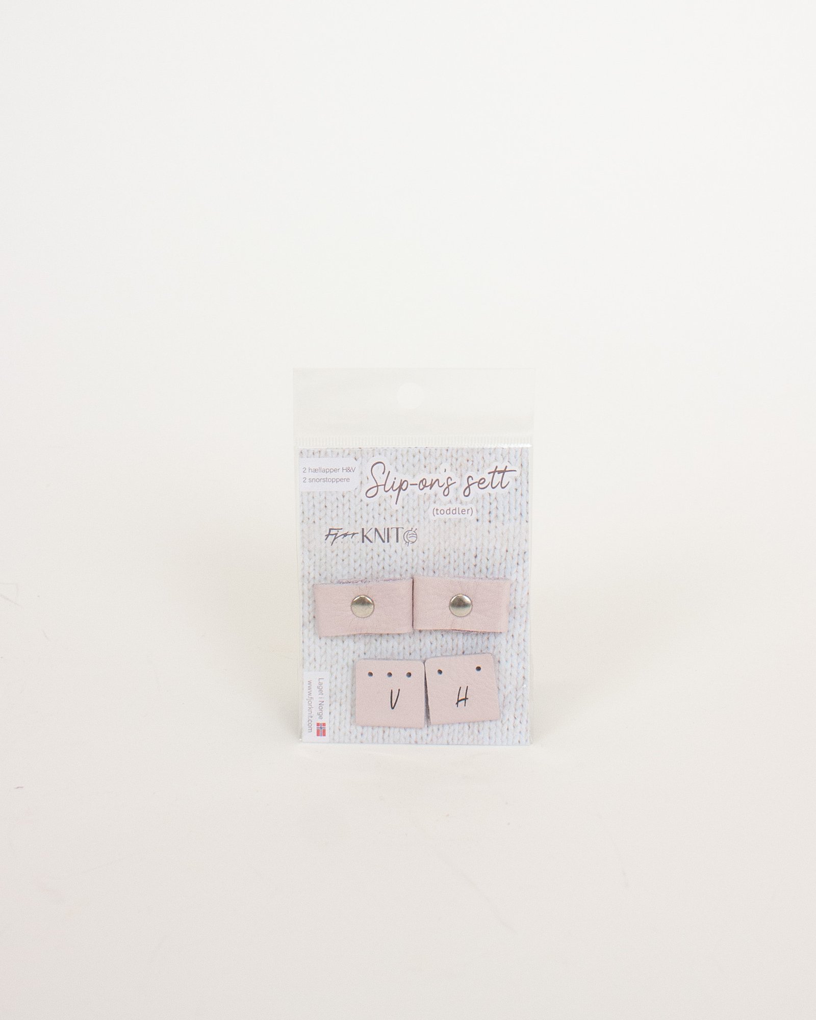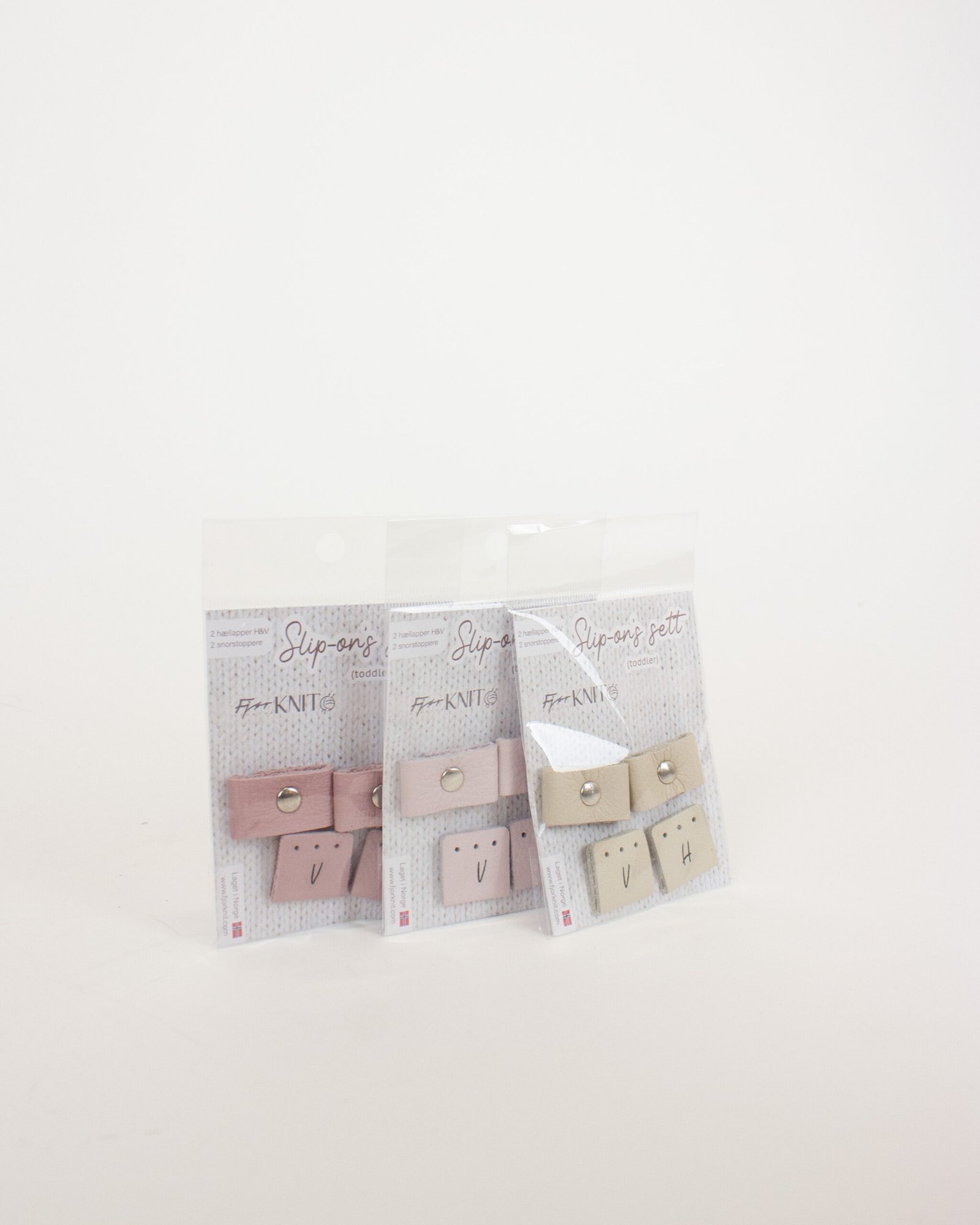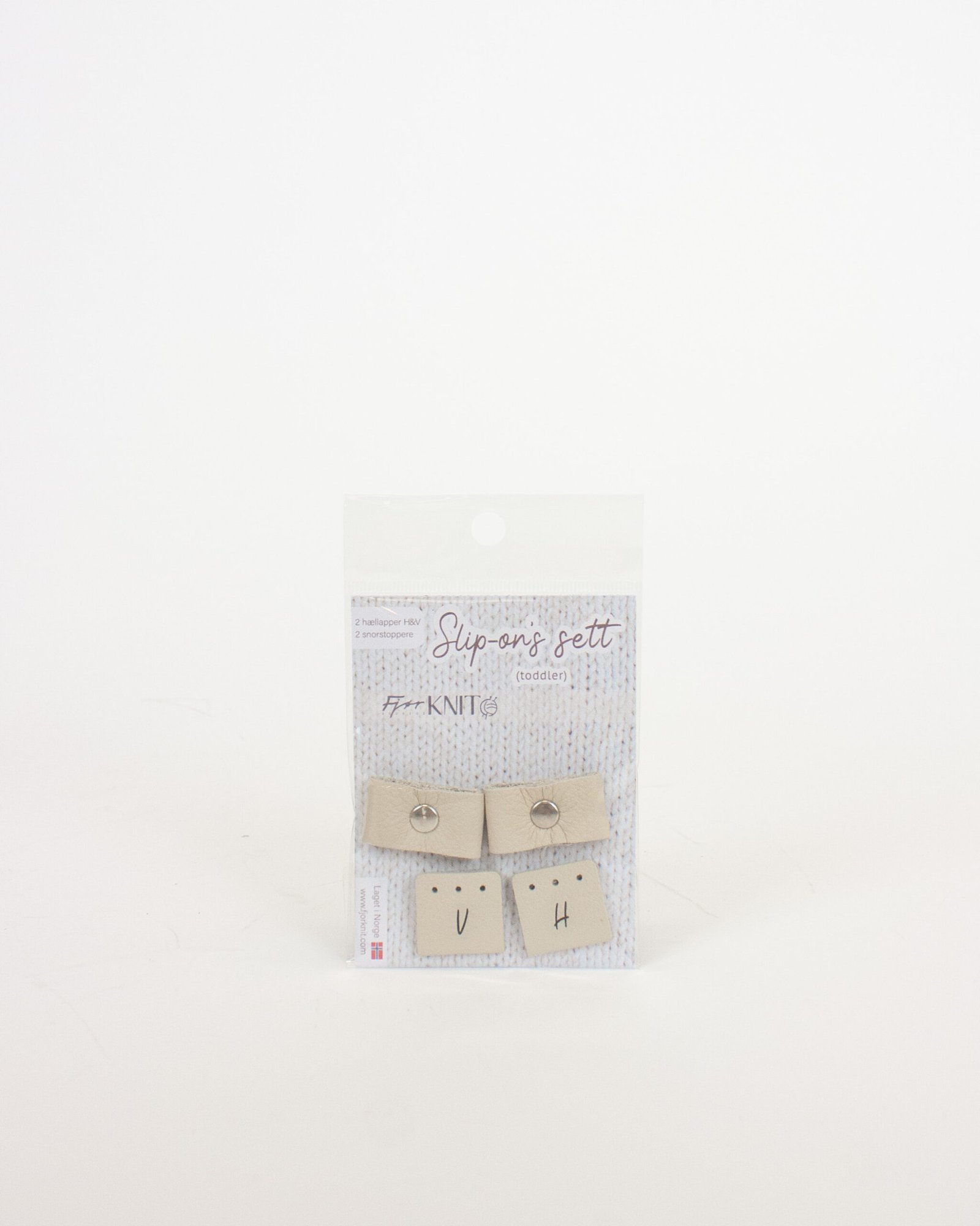 Et sett med tilbehør i glatt lær til Bækre Slip-on’s Voksen eller Toddler. Gir en elegant finish til håndstrikkede tøfler.